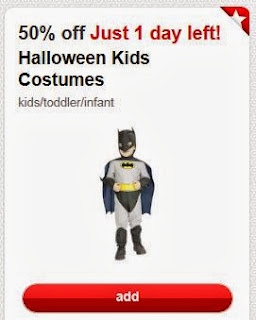 Have you started thinking about Halloween yet? Target is offering an amazing cartwheel offer today and tomorrow only. 50% Off Kids Halloween Costumes